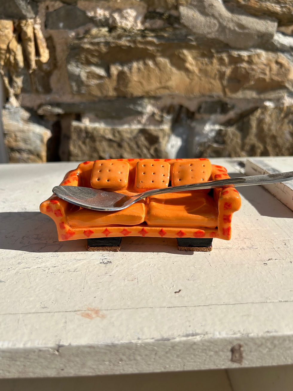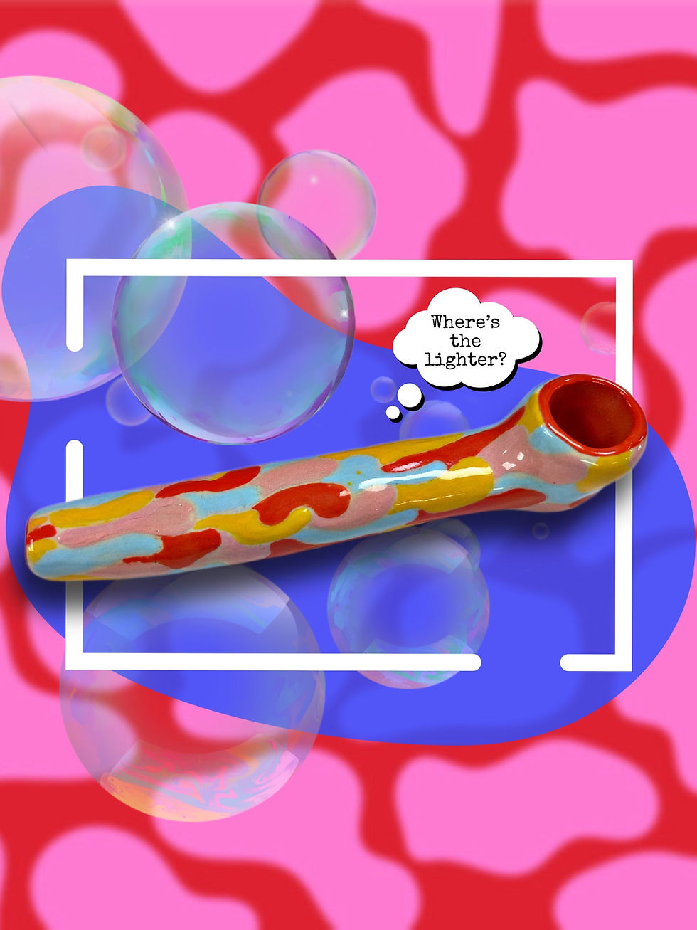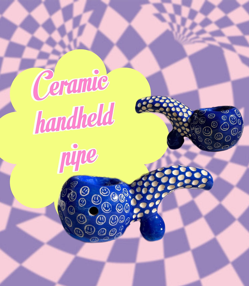 Hand sculpted 6-7" ceramic pipe good for on-the-go use, traveling and easy storage.